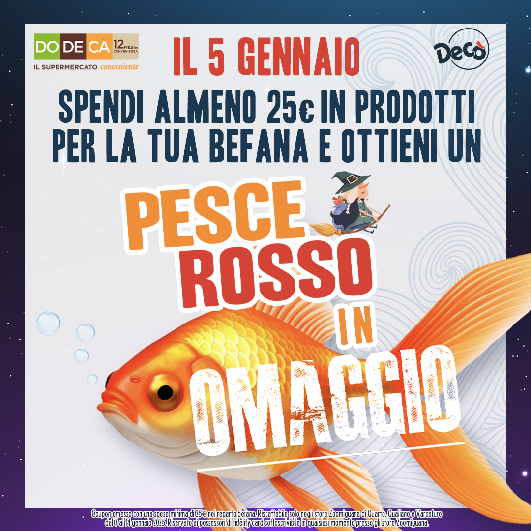 Il 5 gennaio è la data da segnare sul calendario per tutti gli amanti di Zoomiguana e delle sue imperdibili offerte! Quest’anno, la Befana porta con sé una sorpresa speciale per i possessori di fidelity card Zoomiguana: se acquisti una calza nei Dodecà e Decò del Gruppo Catania, spendendo almeno 25€, riceverai in regalo un pesce rosso da ritirare dal 7 al 14 gennaio 2025 presso i punti vendita Zoomiguana di Quarto, Varcaturo e Qualiano. 🐟✨